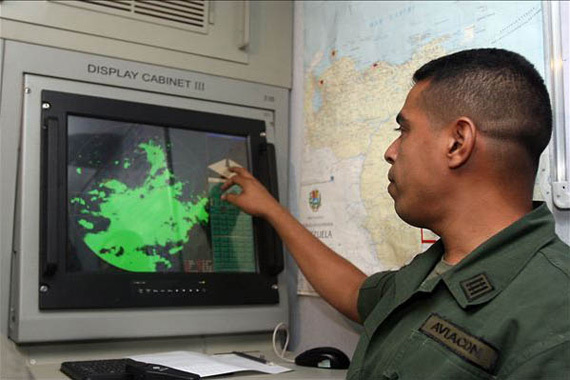 委内瑞拉军人操作中国制JYL1雷达显示屏。